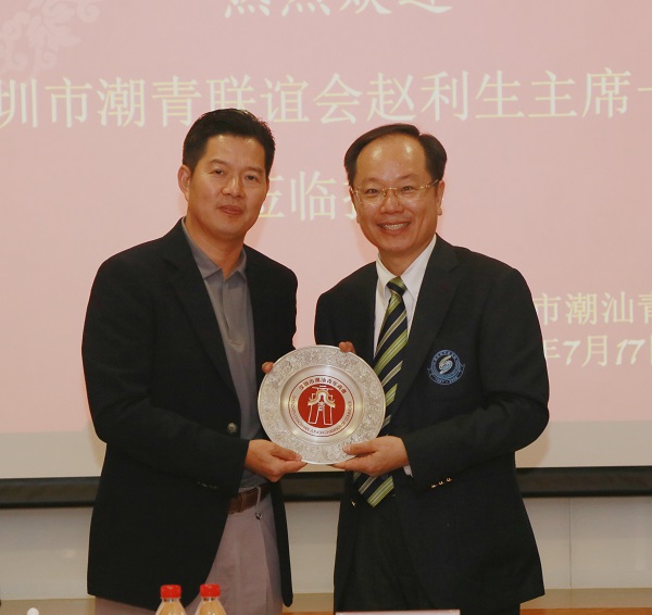 赵利生主席代表深圳市潮青联谊会向我会赠送纪念品