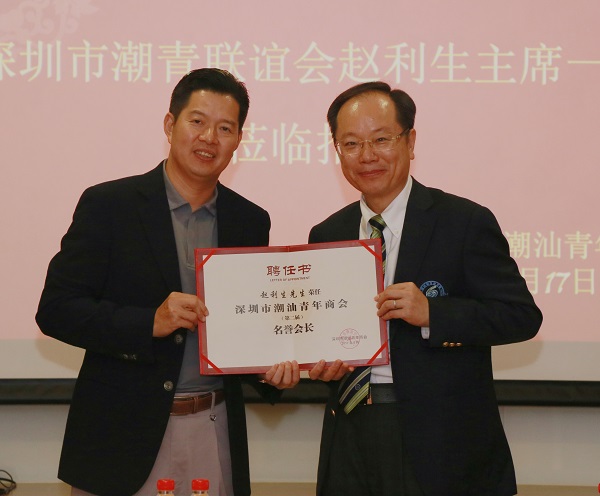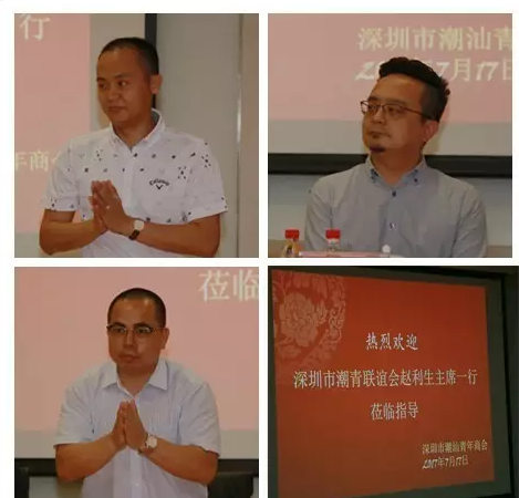 赵利生主席高度赞扬了深圳市潮汕青年商会所取得的成绩。他表示,深圳市潮汕青年商会是一家非常具有活力、创新的特色商会。在深圳这个创新的城市,潮青在继承家族事业的基础上,与时俱进,创新发展。今天非常高兴与潮汕优秀青年一起学习和交流,希望两会今后加强互动合作。同时,他也邀请李奕标会长率团出席将在9月9日举办的深圳市潮青联谊会成立二十周年暨换届就职典礼。