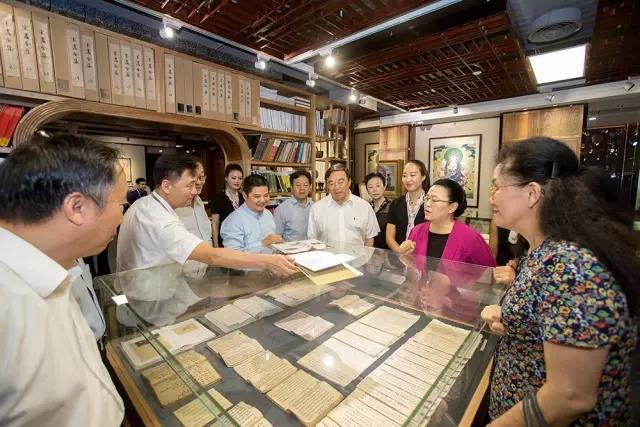 ▲全国政协科教文卫体委员会副主任、中国经济社会理事会副主席张秋俭一行参观宝鹰集团办公环境及宝鹰美术馆