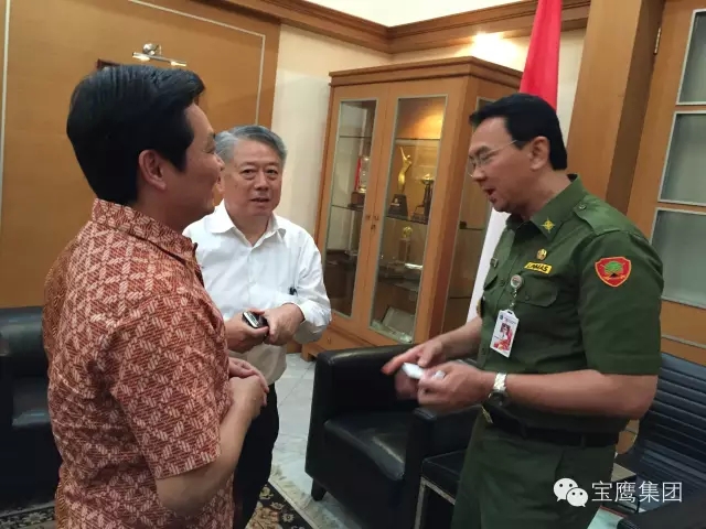 6月1日下午,宝鹰集团董事局主席、印尼宝鹰建设集团总裁古少明在印尼INTILAND地产集团董事长吴端华和印尼熊氏集团董事长熊德龙等陪同下,专程前往印尼雅加达省省政府拜会钟万学省长。