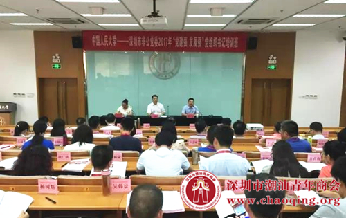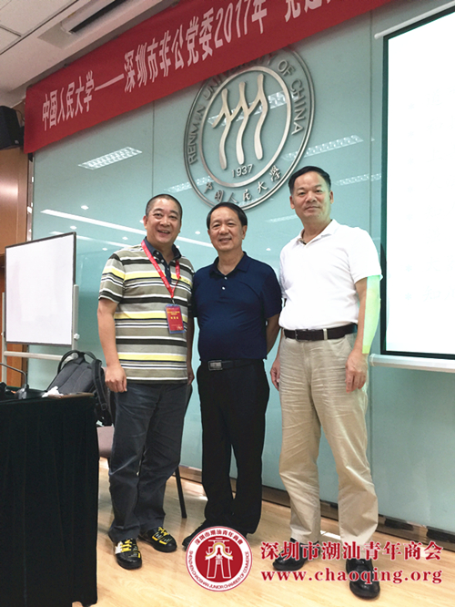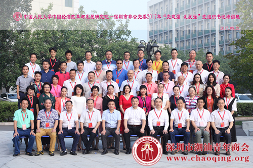8月21日,中国人民大学—深圳市非公党委2017年“党建强 发展强”党组织书记培训班开班,来自华为、平安、万科、阳光保险等知名企业62名党组织书记参加培训,开班仪式在中国人民大学逸夫楼举行。深圳市工商联专职副主席、市非公党委副书记、纪委书记王荫琦,中国人民大学中国经济改革与发展研究院培训部主任付申等出席了开班仪式。受深圳市潮汕商会党委书记邓东和深圳市潮汕青年商会党委书记黄坚泰的委托,深圳市潮汕青年商会党委委员、深圳市城建集团有限公司总经理、深圳市来成号古建筑工程有限公司党支部书记丁全参加培训班。