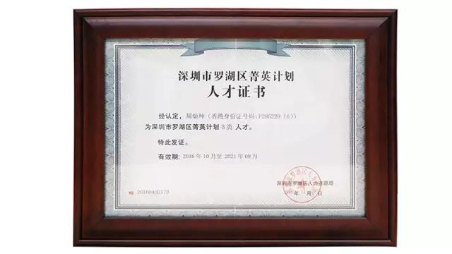 百泰集团董事长周灿坤获颁首批“菁英人才证书”
