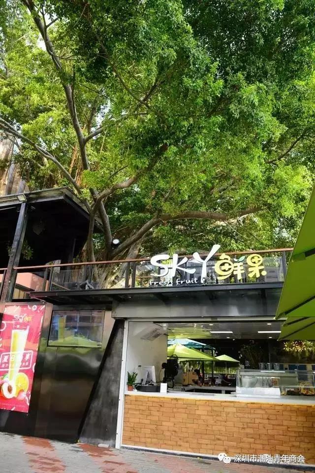 由深圳市潮汕青年商会副会长陈海钲、常务理事周晓峰合伙创办的SKY鲜果是一家开在一棵大榕树上、上下两层共计1000平的果汁冰店,走进这里仿佛置身于宫崎骏的动画世界。