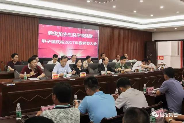9月9日下午,由甲子镇党委、政府主办的“龚俊龙先生奖学颁奖暨甲子镇庆祝2017年教师节大会”在甲子中学行政办公大楼隆重举行。