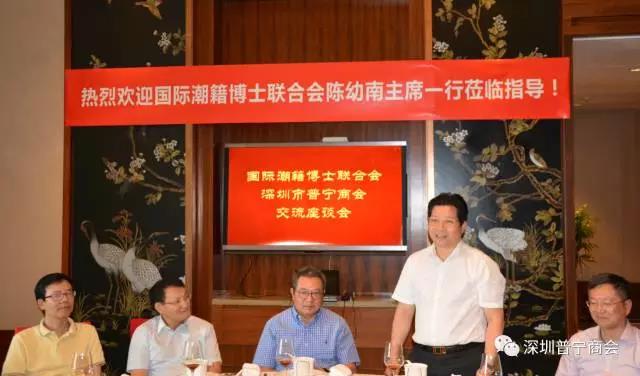 2017年9月18日,深圳市普宁商会迎来了国际潮籍博士联合会陈幼南主席一行莅临我会交流指导。受周南执行会长、杨建宇常务副会长等热情接待,双方就增进合作、潮汕大学等事项做了交流。