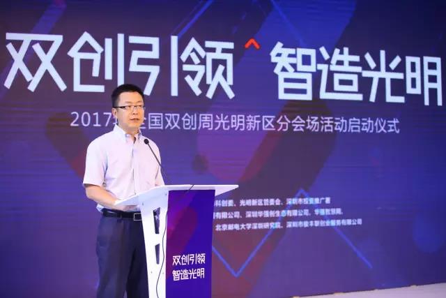 9月15日上午,以“双创引领·智造光明”为主题的2017全国双创周光明新区分会场活动启动仪式在华强创意公园正式拉开帷幕!启动仪式由深圳市科创委、光明新区管委会、深圳市投资推广署主办,深圳华强集团有限公司、深圳华强创生态有限公司、北京邮电大学深圳研究院、深圳市沸腾创业投资有限公司、深圳市骏丰联创业服务有限公司联合承办。光明新区党工委副书记、管委会主任邝兵、深圳市投资推广署综合处处长何峰、光明新区经济服务局局长王毅、深圳华强集团有限公司董事、总裁李曙成、深圳华强高新产业园总经理练斌等相关领导及行业协会、华强合作伙伴、企业家、创客和媒体出席了本次活动。