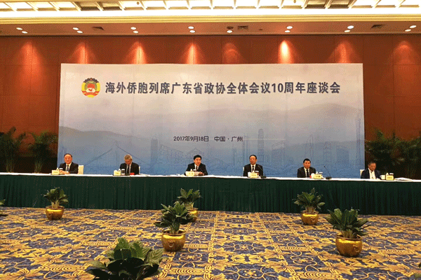 2017年9月18日,“海外侨胞列席广东省政协全体会议10周年”座谈会在广州市隆重召开。广东省政协主席王荣出席会议并讲话,副主席林木声、王珣章,省政协秘书长吴伟鹏,省政协外事委员会主任吴锐成等广东省政协领导,省“五侨单位”负责人和来自世界各国近50名广东省政协特约侨胞代表人士、海外列席侨胞代表等出席了座谈会。