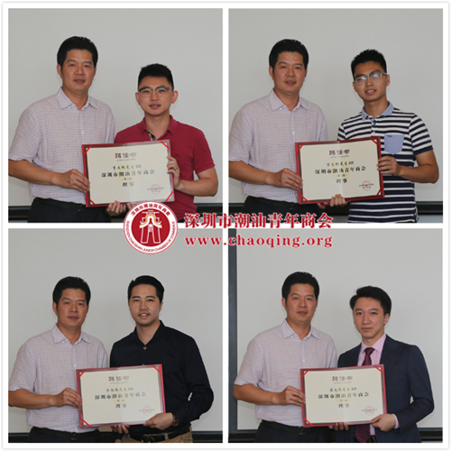 李奕标会长为常务理事李子鹏(上左)、理事陈乐(上右)、吴旺根(下左)、陈杨(下右)颁发证书