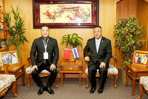 李桂雄会长对郭祥彬会长一行的来访表示欢迎,他表示:今天很高兴也很荣幸在青商会欢迎来自祖国家乡的亲人们,你们都是中国杰出的企业家、粤东商界的精英人士,你们的到来让青商会增添光彩,给我们带来祖国大地喜乐的讯息和动力。随后,李会长简要介绍了青商会创办十七年来的历史和发展现状,他说:青商会成员的主体是来自祖国大江南北,中国改革开放30多年来旅居泰国的新华侨、新移民,很多都是成功的企业家,潮汕籍成员居多,与祖国、广东联系紧密,大部分在中国投资参与祖国和家乡的经济建设。目前泰中友好发展的形势良好,伴随着“泰中一家亲”的不断深化和“东盟一体化”的建成,泰中两国在各领域合作更加紧密。泰国是东盟的中心,大家可以把泰国作为跳板,利用泰国的地理环境优势,把自家生产的产品远销东南亚市场,使企业国际化,提高企业知名度。希望各位企业家在泰国多考察,寻找商机,在泰国设立基地,为子孙后代奠定良好的事业基础和扩大商业范围,并把访泰的好消息带回家乡和粤东。郭祥彬会长和各位企业家都是泰中友好的使者,今天的来访不仅深化了“泰中一家亲”,而且还推动祖国、粤东地区企业家对接合作的一个新里程碑。祝愿贵会访泰取得圆满成功,成果丰硕!