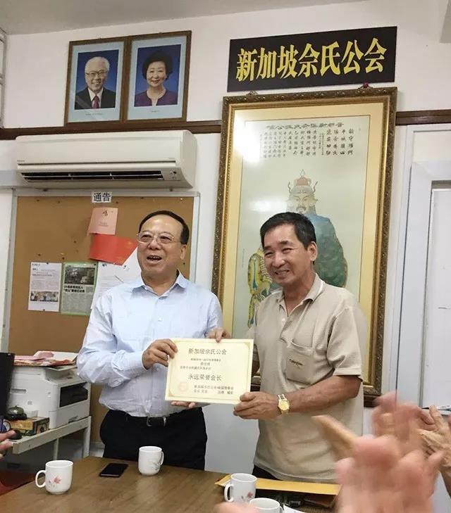 新加坡佘氏公会聘请佘桂锡名誉会长担任永远荣誉会长
