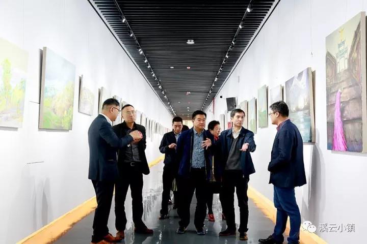 ▲周文捷副主任(右前一)同花溪区副区长管路(右前二)听取工作人员介绍项目