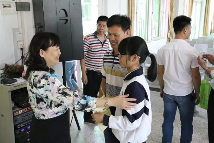 蔡楚辉校友首先在大会上宣读表彰决定,陈奕男等9位考上重点中学分数线的优秀学生获得曾少贵校友奖学金。热烈的掌声,激动的时刻,9位学生分别与家长一同上台领取荣誉证书和曾少贵奖金2万元。