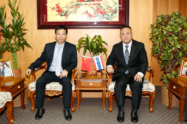陈镇坤局长感谢李桂雄会长及商会同仁的热情接待,他说,他在十多年前就来过青商会,印象非常深刻,今天看到青商会的发展和老朋友们内心感到特别的高兴,青商会多年来为家乡汕头的经济建设贡献良多,在中泰两国与家乡影响很大,今天我们怀着崇敬的心情来拜访,更感觉此行是很具意义的一站。陈局长介绍说,汕头市社会组织总会成立于2013年,成员覆盖面广、影响力大,由各领域专家、学者和优秀青年企业家组成,积极响应“一带一路”建设,服务于家乡汕头的发展。汕头在良贤书记的领导下,以创文为抓手,大力打造交通等基础设施,经济发展势头良好,今年1-9月,汕头GDP增长率居广东省首位。近几年,汕头民政局在省民政厅的指导下,在全国率先推进市、区县、镇(街道)三级社会组织孵化基地和基层社会组织联合会建设,初步形成基层社会组织动员、多元主体力量参与基层治理的新格局。通过不断改革创新,汕头在基层社会组织治理上探索出可推广复制的“汕头经验”。在去年全国民政工作会议上,汕头市还作为全国唯一的地级市在会议上介绍了经验。目前,潮汕三市正加大基础设施建设打造半小时经济圈,对粤东经济振兴将起到很大的推动作用,家乡汕头绝不会辜负海外广大侨胞、乡亲的期望。期待此行能够与青商会建立联合项目、产品贸易、合作交流的平台,继续深化友好关系,对家乡的发展有所作为、有所贡献。