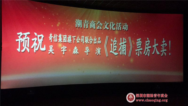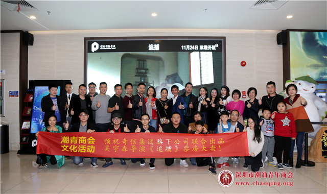 2017年11月24日,由深圳市潮汕青年商会常务副会长、奇信股份董事长叶洪孝旗下企业联合出品的电影《追捕》在深圳大中华国际交易广场四楼保利国际影城上映。临近周末,正是观影好时机,奇信股份豪气包场保利国际影城6号厅,邀请潮青的兄弟姐妹们共同观影,数十位潮青以及亲友热情参与,影厅座无虚席,欢声笑语透过光影铭刻在这冬日里。