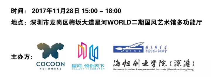 由Cocoon Networks、星河·领创天下和海归创业学院(深港)带来从欧洲跨国漂流而来的八个项目团队将在11月28日(周二) 15:00 -18:00于深圳市龙岗区梅坂大道星河WORLD二期国风艺术馆多功能厅举办Cocoon Networks Demo Day @Shenzhen - 欧洲项目推介会- 深圳站。