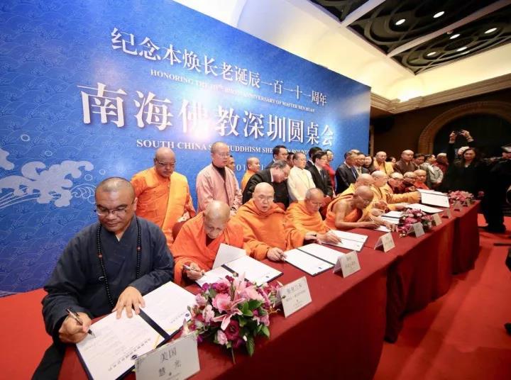 11月26日,纪念深圳弘法寺本焕长老诞辰111周年暨2017南海佛教深圳圆桌会在深圳举行,来自泰国、柬埔寨、老挝、尼泊尔、蒙古、缅甸、美国和加拿大等国家和地区的高僧大德、佛教界代表和专家学者,围绕大会主题“构建命运共同体 迈向南海新时代”,探讨如何为构建新时代南海贡献民间力量,并签署了《南海佛教深圳圆桌会备忘录》,就成立“南海文化研究院”、建立南海佛教深圳圆桌会常设机构等多项议题达成共识。国家宗教事务局局长王作安出席会议并致开幕辞。