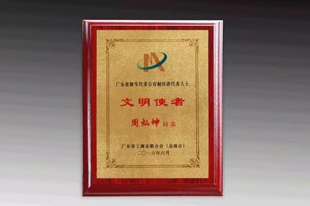 百泰集团周灿坤荣获“广东省新生代非公有制经济代表人士文明使者”荣誉称号