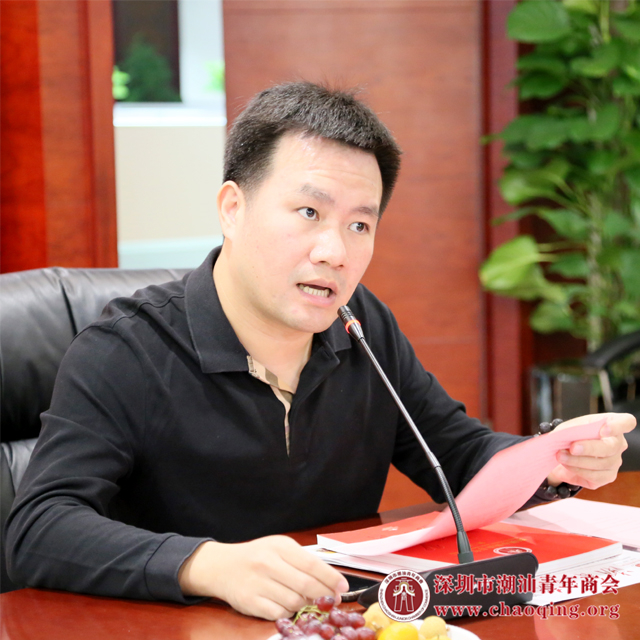 秘书长兼党委书记黄坚泰从平台、品牌、资源、权益、义务等方面详细介绍商会发展情况。他提到,潮青商会是经深圳市民政局批准成立的独立法人社团组织,成员来自潮商接班人精英和自主创业的优秀代表。目前,商会拥有近700家会员企业,推动潮青接班、成长、创新和发展,为全体会员提供创业创新、投资合作、联谊交流、学习培训、公益慈善的精准服务,是潮汕青年施展才华的大舞台。