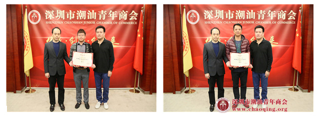 轮值执行会长龚海鹏、吴泽锐分别为理事许杰元(上左)、谢壮(上右)授牌