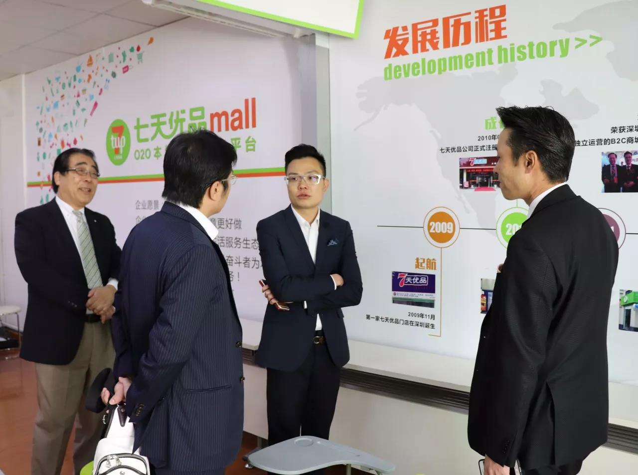 12月11日,冲绳政府领导代表、株式会社プロント代表取締役佐野之康,株式会社MIK JAPAN 代表取締役社長、AJD 株式会社副社长貴島浩史,蓝桥资产管理有限公司日本首席代表承文一行,莅临七天优品集团,考察七天优品苹果园店、腾讯总部,并洽谈项目合作。七天优品集团董事长王董、总裁张总、副总裁李总等相关领导参与陪同、热情接待。