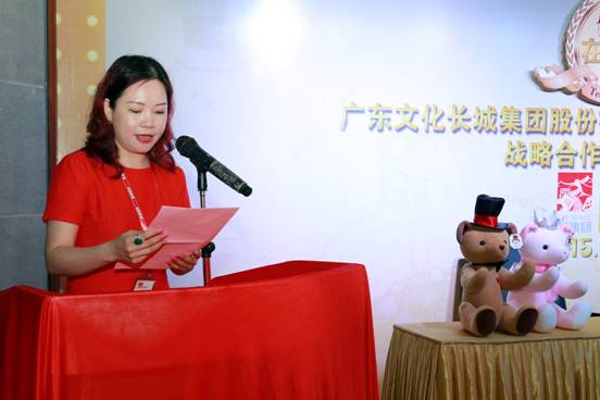 签约仪式上,长城集团副董事长吴淡珠女士作了重要讲话,她表示长城集团一直致力于文化艺术创意领域的推广及建设。公司秉承着“科技创新、文化创意、绿色环保”的经营理念,逐步打造实现以新兴文化产业发展带动传统陶瓷文化产业发展,将传统文化领域与新兴文化产业进行融合,并以此为基础大力发展:互联网、互联网新兴技术、教育、新媒体、艺术品和创意设计服务等文化产业集团。今年,公司正式更名为“广东文化长城集团股份有限公司”,这意味着我们在文化创意领域,在品牌推广建设上又开创了新局面。而“泰迪珍藏”品牌,是以打造一种适合消费者生活方式为品牌愿景,致力于为消费者创造特别的泰迪文化体验。双方对于创意文化产业建设的想法和步调的一致性,成为促进此次合作的关键性因素。我们将借助这次战略合作部署,深入挖掘与“泰迪珍藏”品牌合作的各种机会,把泰迪熊趣味形象与陶瓷产品巧妙结合,让这种温馨有爱的文化融入产品设计中,赋予产品生机与活力。泰迪珍藏系列产品将在流通及直营渠道销售,利用该品牌的影响力,加快长城集团国内市场的拓展速度,开辟一条更具文化创意的品牌发展新径。