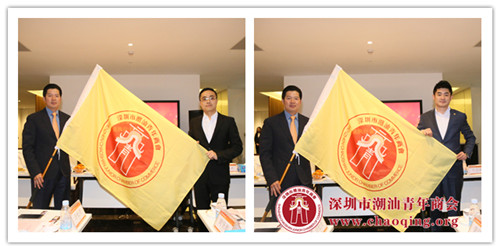 李奕标会长为1月轮值执行会长卓睿(左)、叶洪孝(右)授旗