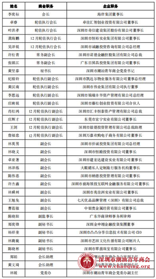 附:深圳市潮汕青年商会2018年1月轮值执行会长、副会长交接会议出席名单