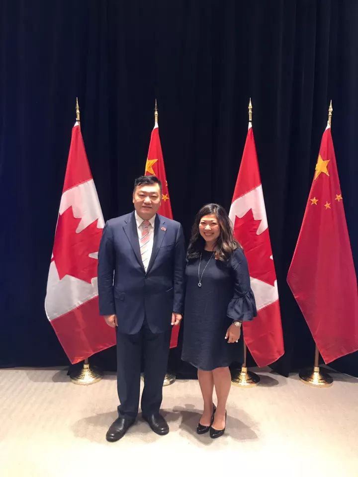 胡剑江会长同加拿大驻广州总领事白静芳(左)合影留念