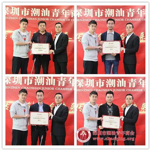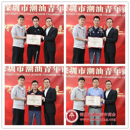 轮值执行会长卓睿、叶洪孝为常务理事石晓新(上左)、理事许华奇(上右)、蔡晓星(下左)、吴钦鸿(下右)颁发证书