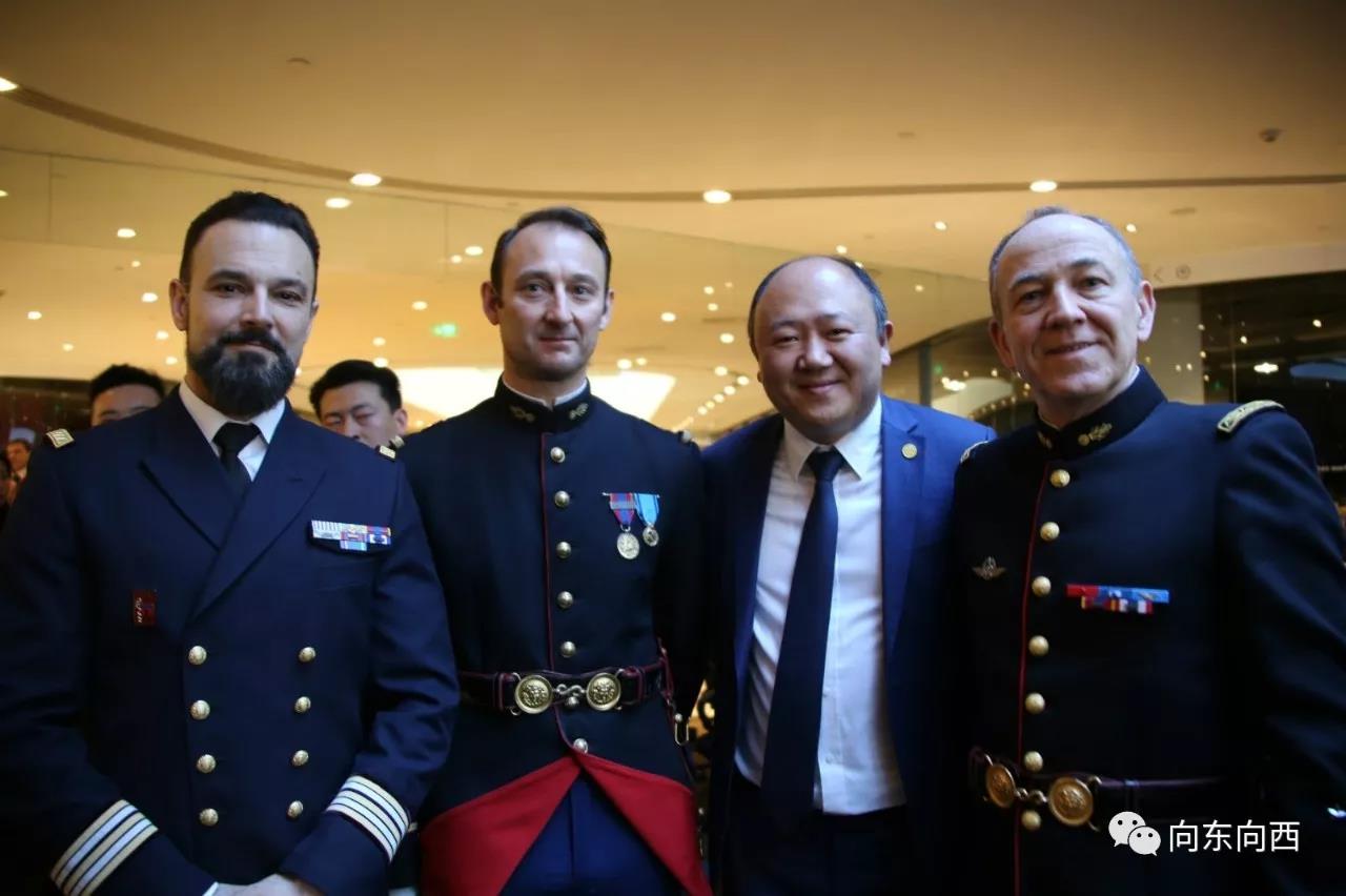 马克龙总统访华期间,赠送中国一匹共和国骑兵队的马匹,开展“骏马外交”。图为陈文雄与法国共和国骑兵队成员合影。(图片来源:欧洲时报记者张新 摄)