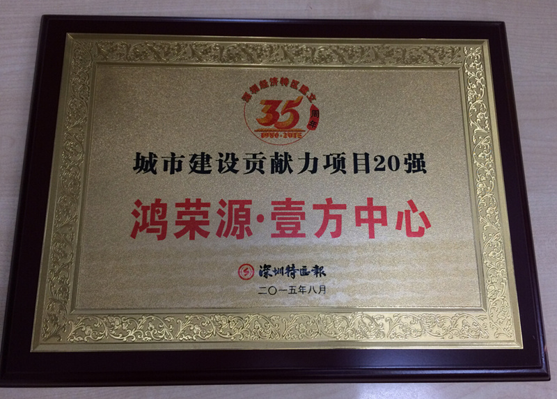 会上,鸿荣源集团凭借多年以来为深圳特区城市建设所做出的杰出贡献,荣获“城市建设贡献力企业25强”奖项。此外,集团两大在建综合体项目——“鸿荣源•壹方中心”及“鸿荣源•壹城中心”,凭借先进的运营理念及品牌影响力,荣获“城市建设贡献力项目20强”奖项。