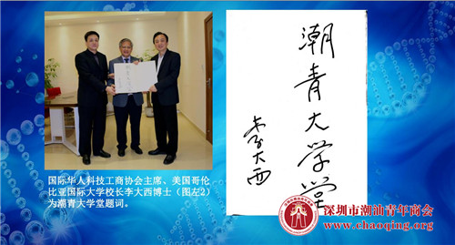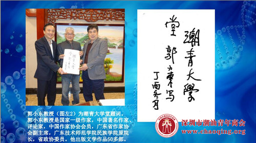 广东省政协原副主席、省委统战部部长李统书,美国国际华人科技工商协会主席、美国哥伦比亚国际大学校长李大西博士,国家一级作家、中国著名作家、评论家、广东省作家协会副主席郭小东等分别为华体会体育竞技题词,对新一代潮青给予厚望。