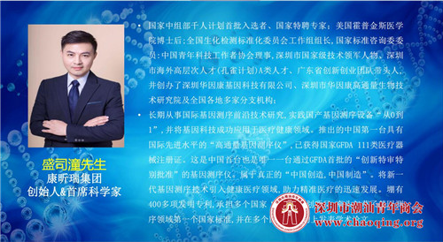 2018年1月28日,由深圳市潮汕青年商会、深圳大学国际潮商研究中心主办的华体会体育竞技第一讲“基因行业的兴起与医疗健康领域的投资机会 ”在福田保税区长富中心隆重举行。康昕瑞集团创始人、首席科学家盛司潼,PhD、海普洛斯CEO&董事长许明炎,深圳弘睿康生物科技有限公司创始人&CEO 胡鹏分别做演讲。