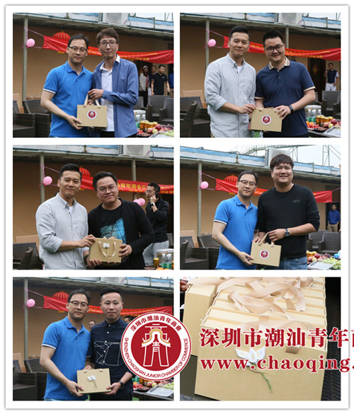 轮值执行会长郑少鹏、李光春为生日成员颁发礼品