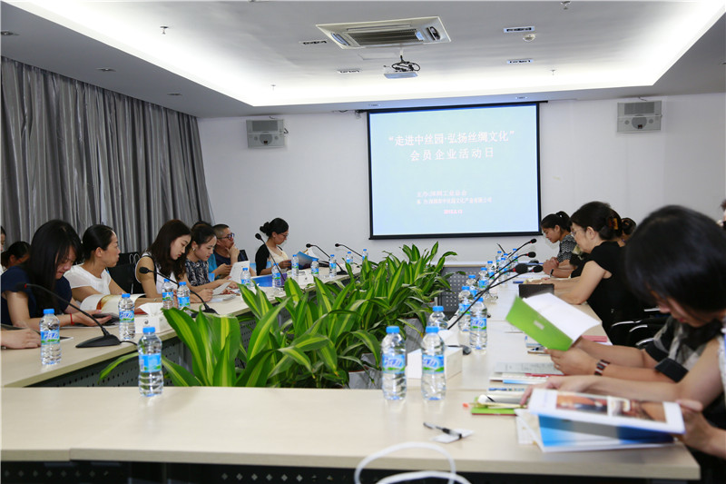 8月13日下午,深圳市工业总会在中丝园举办“走进中丝园,弘扬丝绸文化”会员联谊活动,中丝园常务副总经理戴芙蓉、副总经理李艳芬、深圳市工业总会吴沂烛秘书长及会员单位一行60余人参加了此次交流活动。