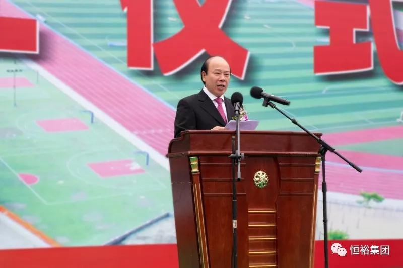 仪式上,恒裕集团董事局主席龚俊龙对百年名校——彭湃中学的光辉发展历程深表钦佩,对海丰县启动彭湃中学提质升级工程表示支持。