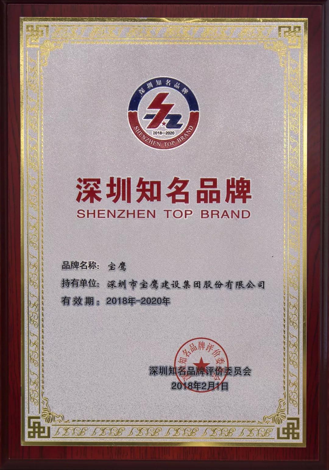 宝鹰集团因在市场份额、诚信经营、企业形象等方面的突出表现,通过层层筛选,在来自信息技术、机器人、通用设备、医疗器械、物联网、建筑装饰、摄影器材、食品加工等40多个细分行业的215家评选企业中脱颖而出,荣获“深圳知名品牌”称号。