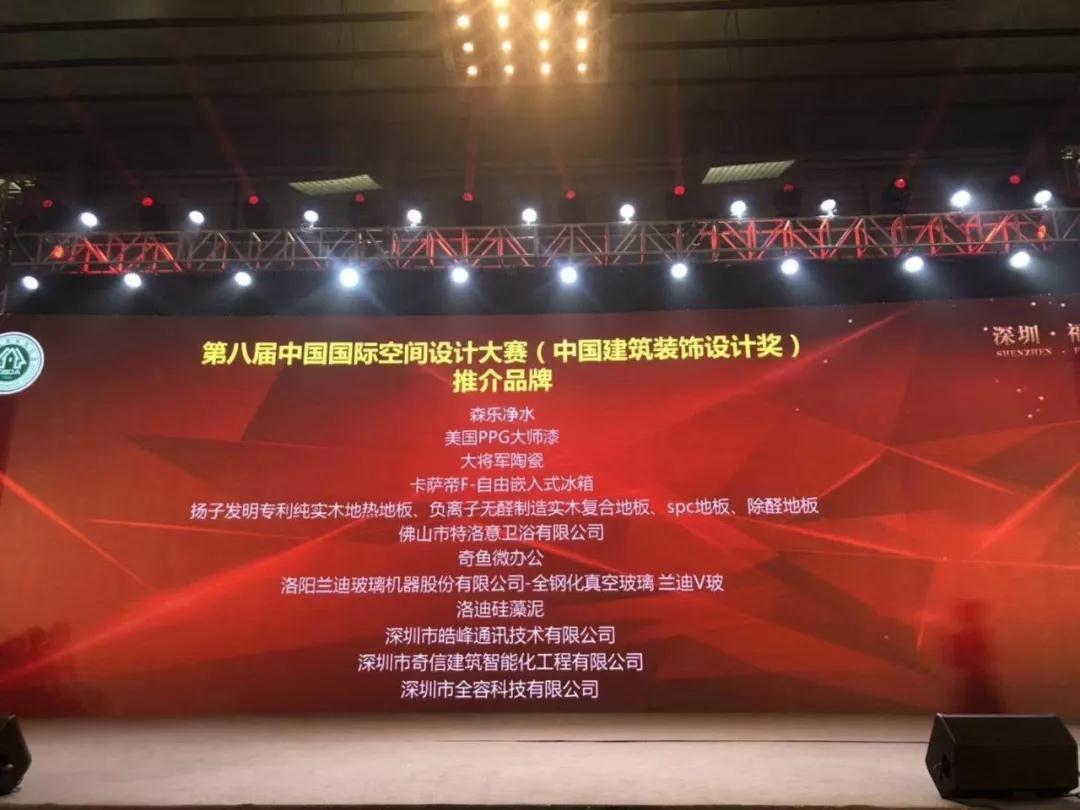 奇信智能公司荣获第八届中国国际空间设计大赛(中国建筑装饰设计奖)推介品牌奖