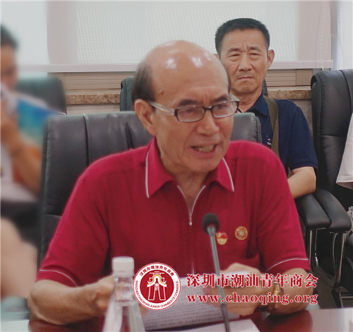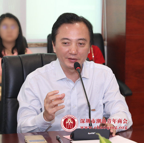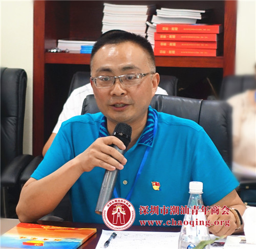 黄坚泰书记简要介绍了潮青商会的发展概况。他提到,商会目前拥有近800家会员企业,成员是潮商企业接班人和创二代的优秀代表。2017年7月1日,潮青商会党总支升级为二级党委,在册党员100多位,下辖6个党支部,以“五爱”理想信念教育和培养潮青精英加入党组织,全面提升青年的综合政治素养和创业创新能力。