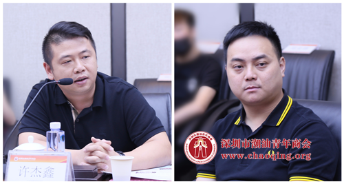 7月份轮值副会长许杰鑫(左)、魏子群(右))讲话