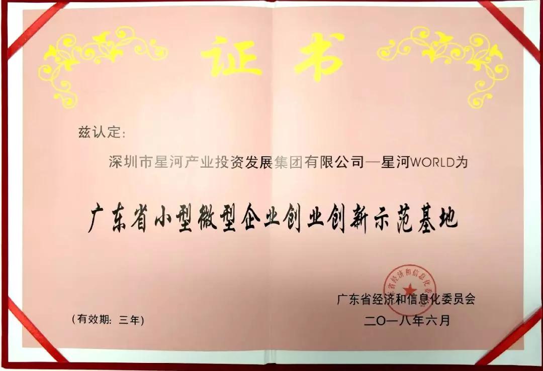 星河WORLD荣获广东省“小型微型企业创业创新示范基地”称号