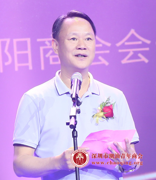 深圳市揭阳商会会长黄时余在庆典上讲话。他祝福深圳揭商青联五周年生日快乐。他表示,很高兴看到深圳揭商青联五年来的发展,他对在深揭商青年寄予厚望,希望他们继续怀揣着“聚力创新,共享未来”的共同梦想努力奋斗。