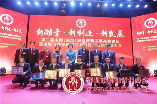 2016年1月3日,第二届中国(深圳)潮青创新发展高峰论坛暨深圳市潮汕青年商会首届三次会员大会,吴开松会长(二排左三)为潮青优秀企业颁奖