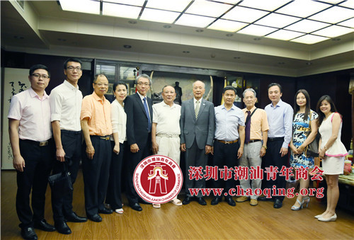 吴开松会长(左六)、黄育宏会长(右五)、李南贤会长(右六)等在探讨深圳潮青和台湾潮青合作发展时合影