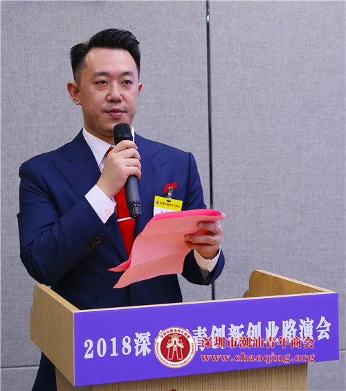受李奕标会长委托,林澍副会长代表深圳市潮汕青年商会致欢迎辞。他说,改革开放40年来,百万潮商为深圳和家乡的繁荣发展做出了积极贡献,深圳潮青在创新创业显示了新的力量和精神。星河·领创天下这个国家级众创空间就是潮商和潮青创新的样榜。他介绍,深圳市潮汕青年商会目前拥有近800家会员企业,提供创业创新、国际合作、学习交流、公益慈善的服务,推动潮青接班、成长、创新和发展。