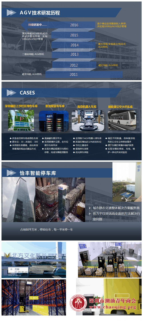 项目简介:怡丰机器人是针对当下社会车位缺口大、信息化程度低等问题应运而生的一项智能停车技术,通过做增量、做优化、做信息等途径,有效解决市场需求,产生示范效应、治堵效应、有序效应,以灵活的市场行为产生驱动力,带动停车产业健康发展,以产业促进招商引资,为实现城市静态交通梦想、智慧工厂交通梦想不懈努力,做新时代下的智能搬运。