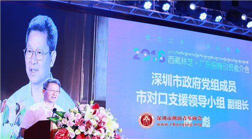 深圳市政府党组成员、市对口支援领导小组副组长陈彪在推介会上致辞。他表示,深圳市委市政府高度重视援藏工作,自1995年以来,共安排援藏资金13.55亿元,实施援藏项目174个。他相信,本次推介会一定能够使深圳和林芝更加紧密联系,通过本次推介会,为两地提供合作交流平台,为两地企业家及各界朋友搭建合作的桥梁,实现优势互补、互利共赢。