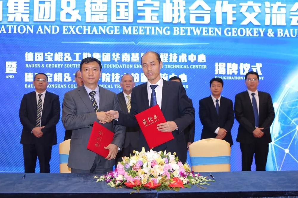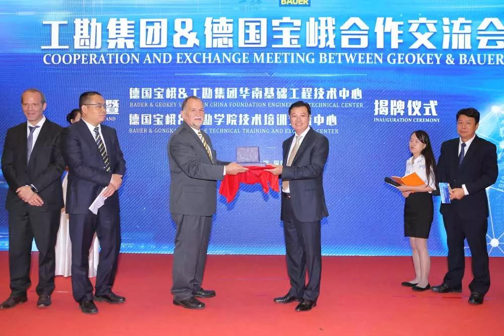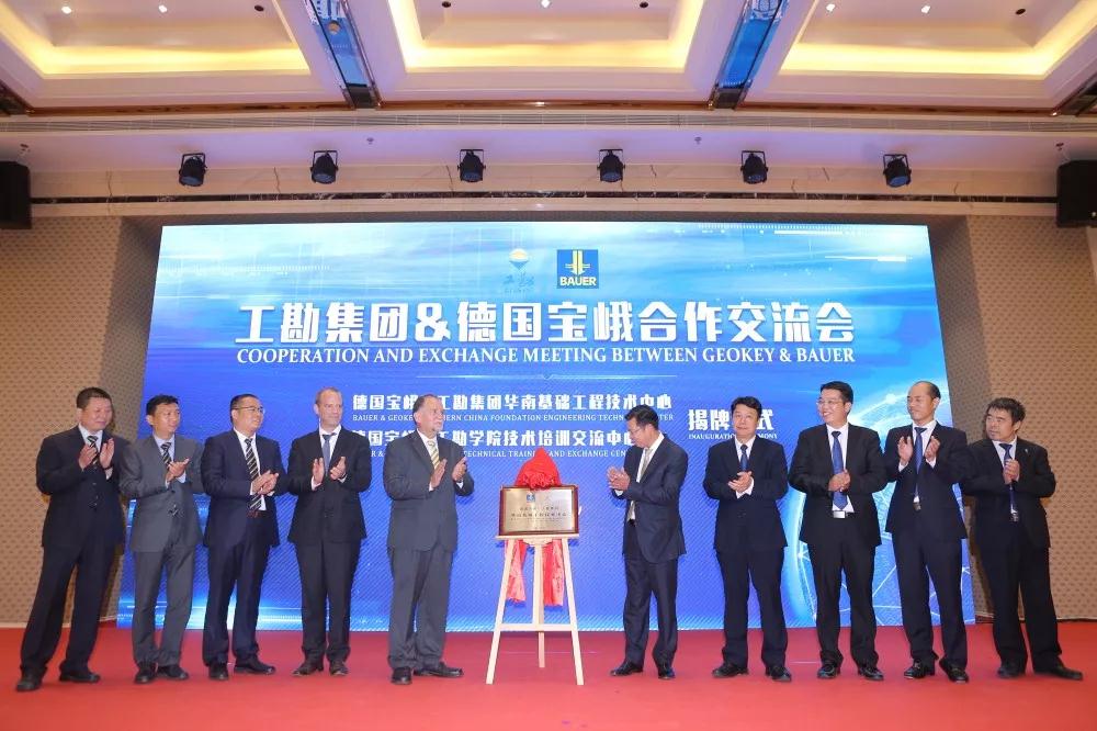会上,工勘集团与德国宝峨共同签署了合作协议,并共同为宝峨驻工勘集团维修点、华南基础工程技术中心、工勘学院技术培训交流中心揭牌,期待双方在未来的合作中建立更加紧密的联系,增进交流,资源共享,共同培养工匠人才。