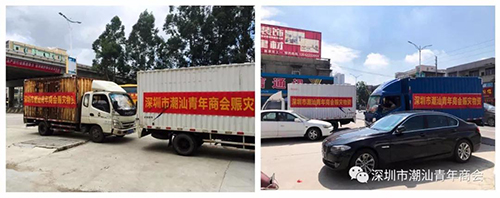 无处不在的潮青商会救灾物资车辆