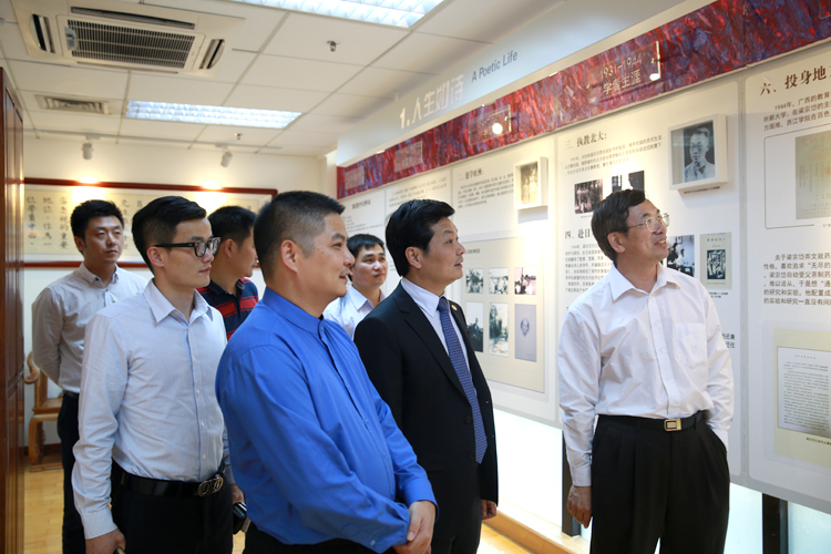 在广东外语外贸大学副校长何传添的陪同下,古少明主席一行先后考察了广东外语外贸大学21世纪海上丝绸之路协同创新中心、图书馆和梁宗岱纪念馆。在随即召开的校企合作洽谈会上,古少明主席指出:广东外语外贸大学人杰地灵、风景如画,自己非常荣幸能到这所著名高校参观学习。宝鹰集团创立至今,以建筑工程装饰为主业,不断开拓,形成了集建筑装饰、资本运营、互联网+、文化艺术多方位发展的新局面。宝鹰集团一直十分重视与高校的合作,并进行了多年的探索。此前,宝鹰集团与广西水利电力职业技术学院合作,从开始的一个宝鹰班,到现在的宝鹰建筑学院,校企合作规模不断壮大,学生毕业就业率高达98%。现在,宝鹰建筑学院已经形成了一套健全的模式。目前,宝鹰集团正在沿着国家的一带一路战略进行海外业务的开拓。此时,特别需要一大批高、精、尖的语言类和经贸类复合型人才,广东外语外贸大学21世纪海上丝绸之路协同创新中心的研究课题与实践,特别是民营企业走出去的相关研究,与宝鹰集团的海外战略高度契合。同时,广东外语外贸大学培养的语言类和经贸类人才十分符合宝鹰集团的用人需求,能与该校合作,必将为宝鹰集团在新起点上腾飞提供巨大帮助。